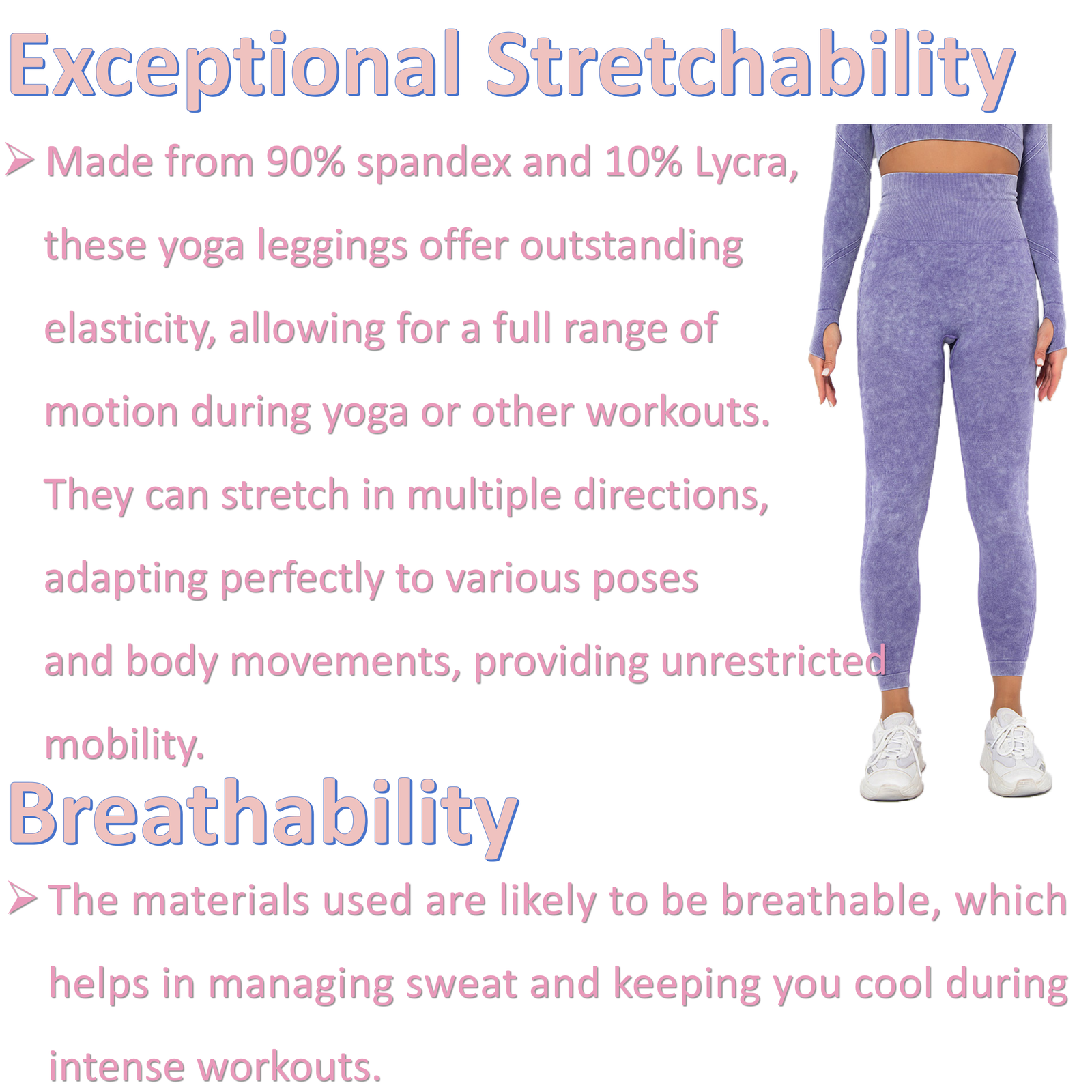 Made from 90% spandex and 10% Lycra, these yoga leggings offer outstanding elasticity, allowing for a full range of motion during yoga or other workouts. They can stretch in multiple directions, adapting perfectly to various poses and body movements, providing unrestricted mobility.